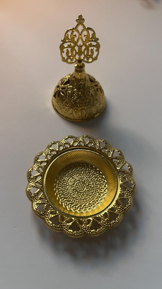 حامل فحم للمباخر ملكي يتوفر بلون ذهبي وفضي